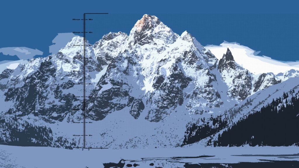 Jest 7 kwiecień 1936 roku, dwóch śmiałków decyduje się spróbować swoich sił na północnej ścianie MSW mierzącej licząc od tafli Morskiego Oka 1044 metry wysokości względnej. Te dwa punkty wielkości 5 pikseli u podstawy ściany są odpowiednio wyskalowaną reprezentacją ciała mężczyzn liczących mniej więcej 1,8 wzrostu.