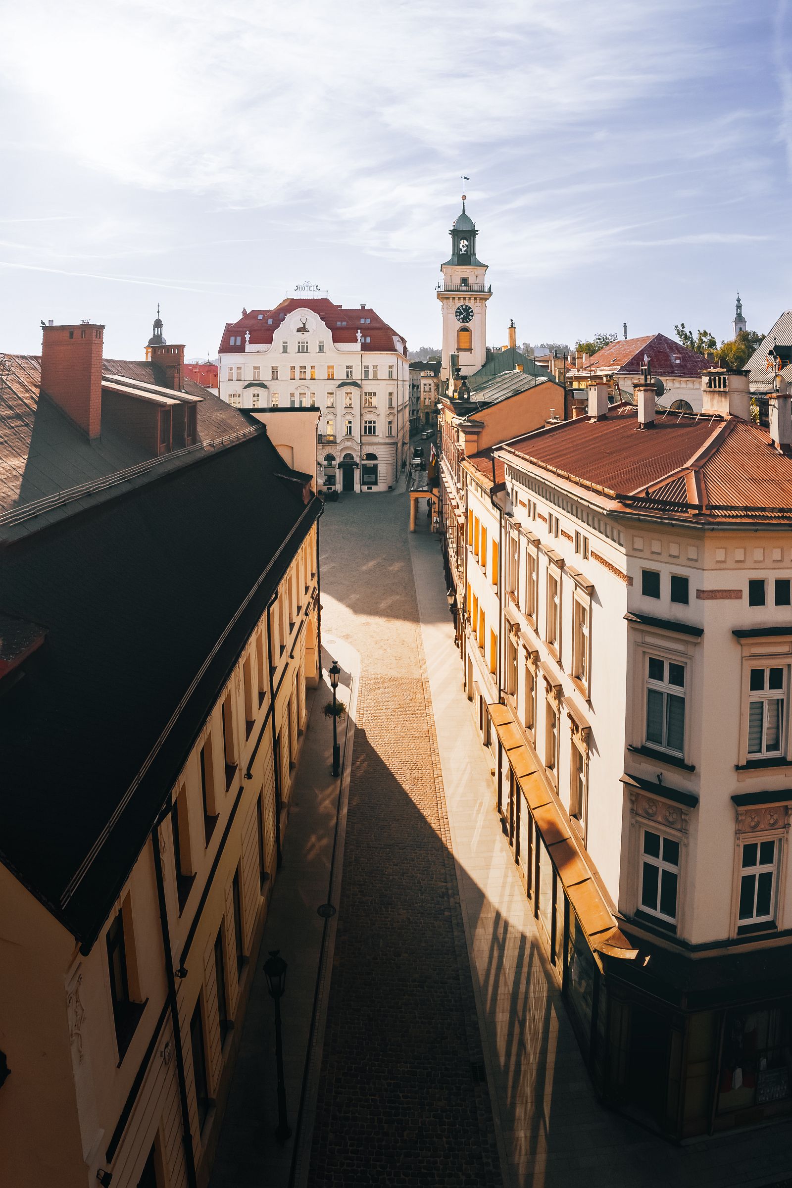 W fotografii pejzażowej wszystko zaczyna się od znalezienia właściwego miejsca i kompozycji. Jest to kluczowy aspekt, a jednocześnie, niestety, aspekt którego niespecjalnie da się nauczyć z książek. Raczej trzeba go wytrenować szukając i eksperymentując. Oczywiście podstawowe tło naukowe czy inspiracje pomagają ale ostatecznie najważniejsze jest doświadczenie. Ja znalazłem swój kadr podczas zwykłego spaceru w Cieszynie wzdłuż jego najbardziej reprezentacyjnej ulicy, czyli Głębokiej. Choć głowę mam zawieszoną na wysokości 1,7m to wystarczy trochę chęci i można odrobinę unieść się w powietrze w ramach wyobraźni. W ten sposób wpadłem na pomysł jak zrobić zdjęcie Głębokiej aby nie było takie jak tysiące innych i w tym celu wystarczy tylko nabrać nieco wysokości.
