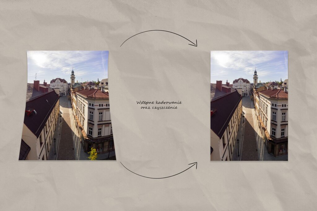 Tak wywołane zdjęcie trafia już do Photoshopa gdzie zaczynam od wstępnego wykadrowania aby pozbyć się nierównych krawędzi. Następnie na zduplikowanej warstwie usunąłem wszelkiego rodzaju przeszkadzajki. Króluje głównie stempel a przy bardziej skomplikowanych tematach wypełnienie generatywne.