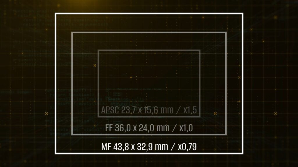 Wyposażono go w średnioformatową matrycę o rozdzielczości 102 Megapixeli. Aby lepiej wyobrazić sobie różnicę spójrzmy na parametry najpopularniejszych matryc. APSC mają rozmiary w okolicach 25mm na dłuższy boku co przekłada się na crop o wartości 1,5, pełna klatka to oczywiście rozmiar 36mm, jest swego rodzaju standardem do którego się odnosimy dlatego wyrażamy ją jako crop 1,0, natomiast w średnim formacie GFX100 rozmiar matrycy osiąga blisko 44mm dlatego crop jest niejako wsteczny i wynosi 0,79.