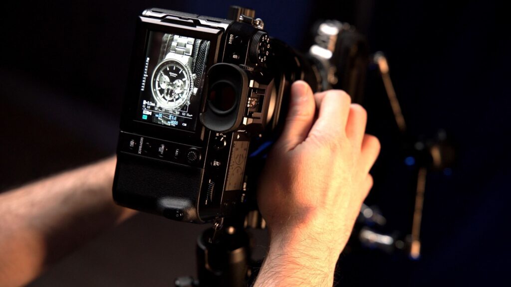 Jako przykład weźmy zegarki. Jest to jeden z trudniejszych produktów do sfotografowania z uwagi na niewielki rozmiar, wielość płaszczyzn oraz zastosowanych materiałów przez co naprawdę trudno opanować oświetlenie. Taki produkt stanowi duże wyzwanie, szczególnie, że często uchodzi jednocześnie za produkt luksusowy. Wartości niektórych zegarków potrafią przekraczać miliony dolarów dlatego dobrze aby zdjęcie również wyglądało jak milion dolarów. I to jest jeden z wielu scenariuszy w których na scenę może wejść GFX100s.